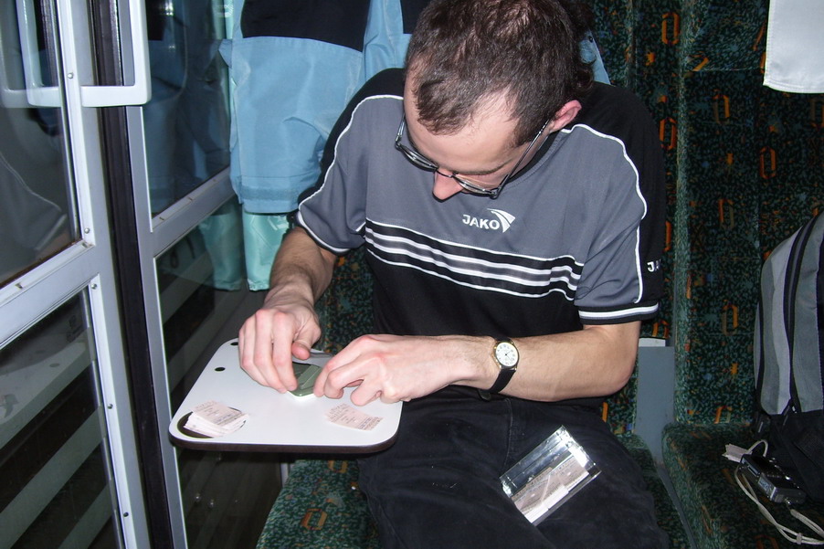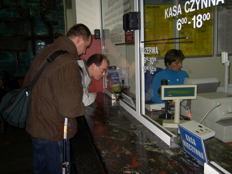 Dołącza się do nas Taraś. Wymiana kasy na dokument podróży. |