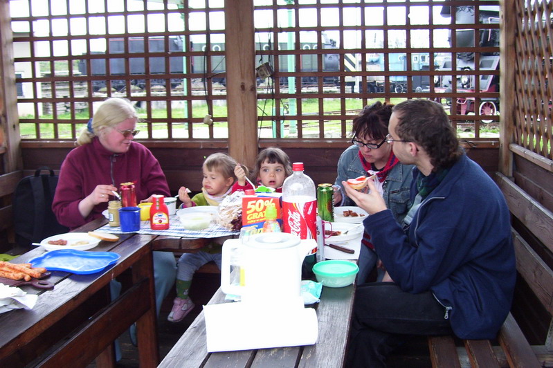Mama i tata (schowany w altance) z małymi Słowiczkami |